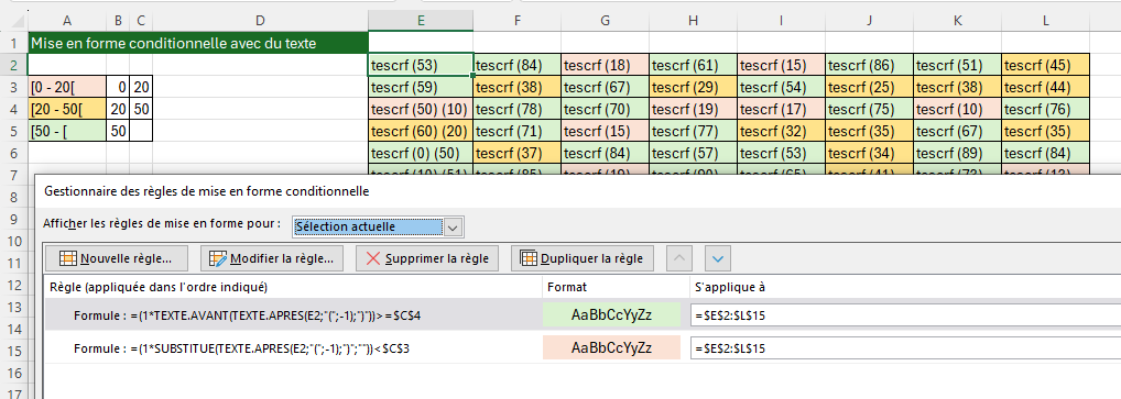Une fois la valeur numérique extraite, on peut appliquer une mise en forme conditionnelle classique suivante.